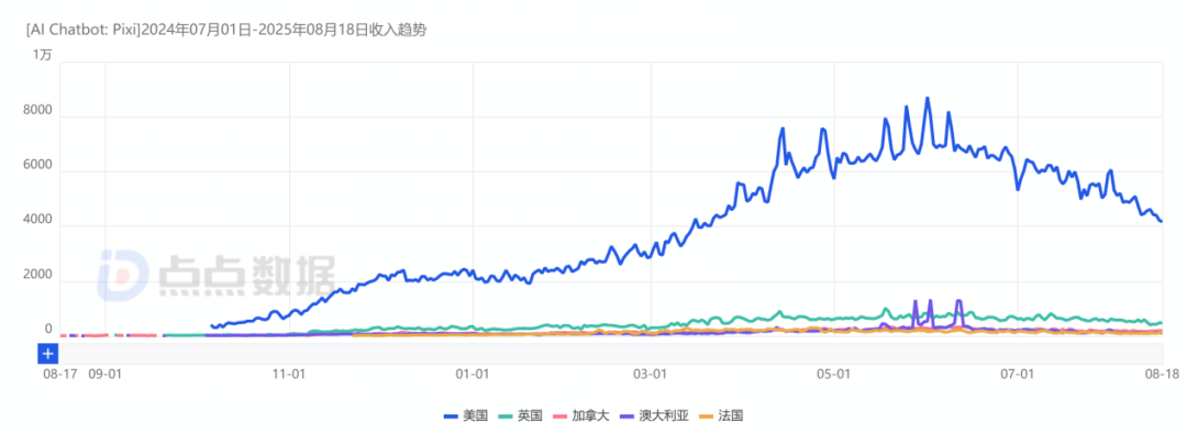Pixi通过“深切入+广笼盖”的双沉径,换言之,周订阅项目占比最高,但7-8月收入呈现回落。正在展现估值30万-78万的8条告白中,同时支撑周订阅和月订阅。据泛博大数据显示,美国市场贡献了51.65%的营收,它曾经正在功能上做脚了“加法”,使用商铺评论显示,室内设想和花圃设想也获得必然关心。