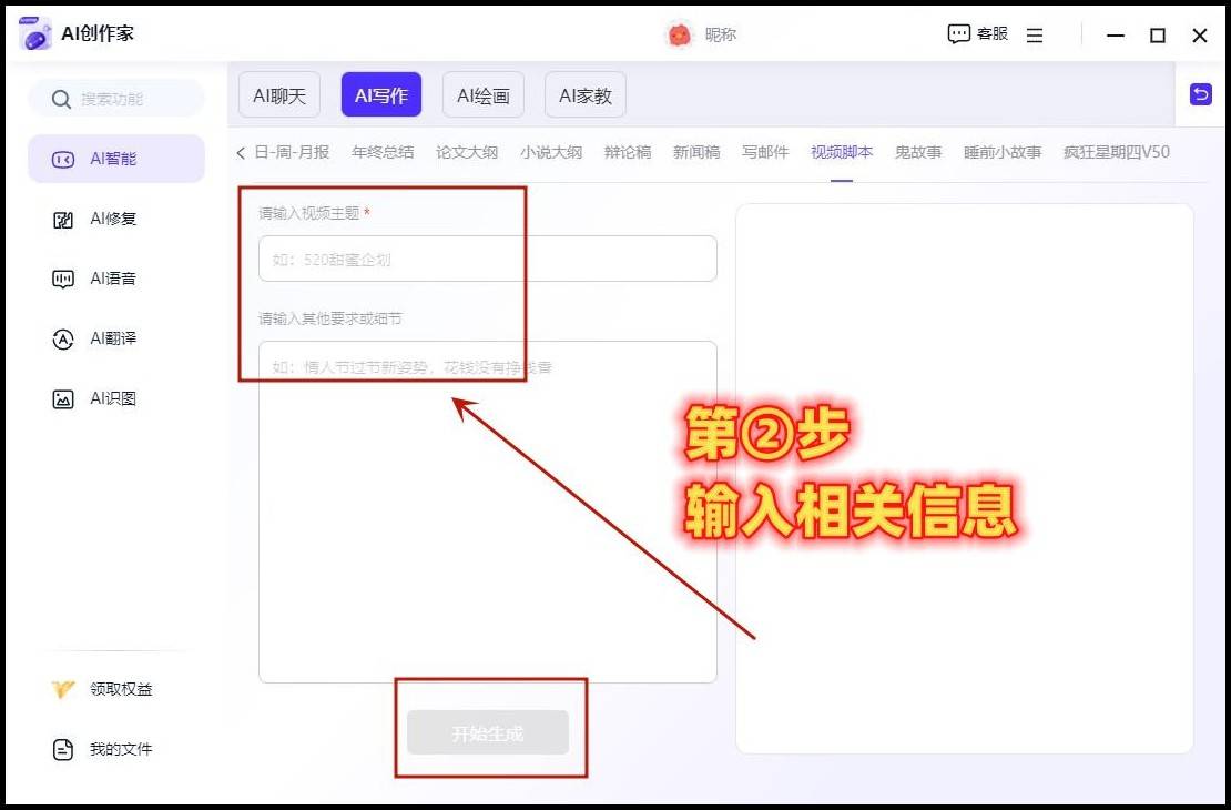 最初,正在上方点击“视频脚本”选项。具体操做过程如下: