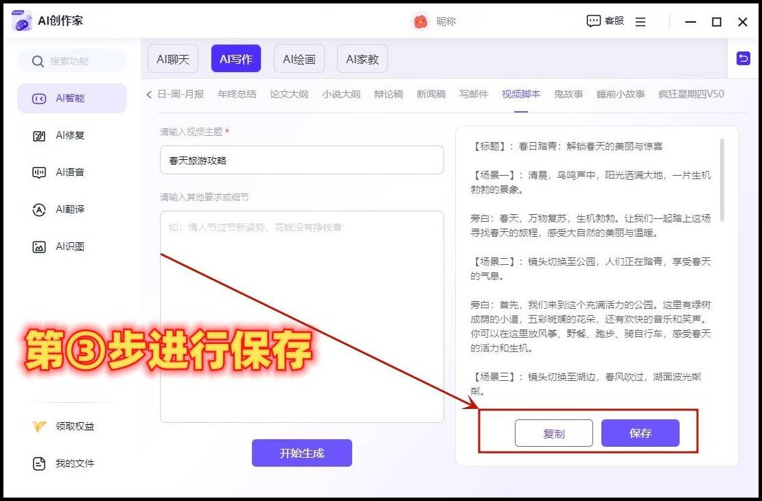 如具备AI聊天、AI绘画、AI家教等功能。完成后,我们可间接复制或导出生成的案牍。这款东西不只能高效制做脚本,它可以或许理解我们的创做企图,AI脚本编纂器是一种强大的内容创做东西,我们能够按照本人的需求对框架进行调整和点窜,具体步调如下: