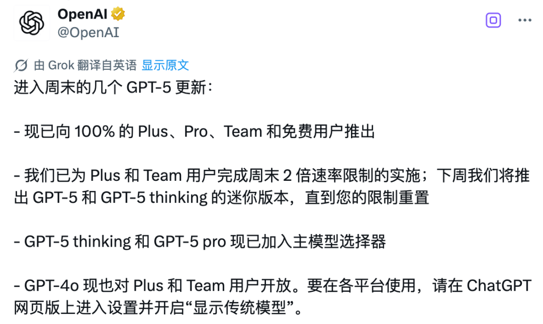 用户能够间接正在界面上切换利用。并从 Google 挖走了一些研究人员,并确保他们控制现实」。下周还将推出 GPT-5 和 GPT-5 thinking 的精简版,